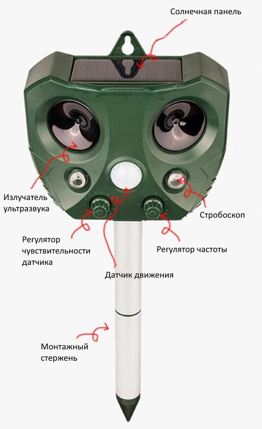 Если вам нужно быстро зарядить отпугиватель от сети, сделайте это в выключенном состоянии. При первичном использовании лучше оставить прибор на солнце на весь день и только потом включать ультразвук. Устанавливая устройство, проследите, чтобы датчик не был перекрыт близлежащими объектами. В противном случае он не будет срабатывать.